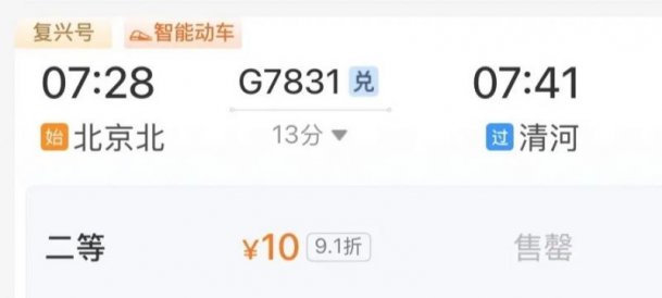 65岁的李奶奶和孙子一起乘坐北京北到清河的G7831次列车,二等座的票价为10元
