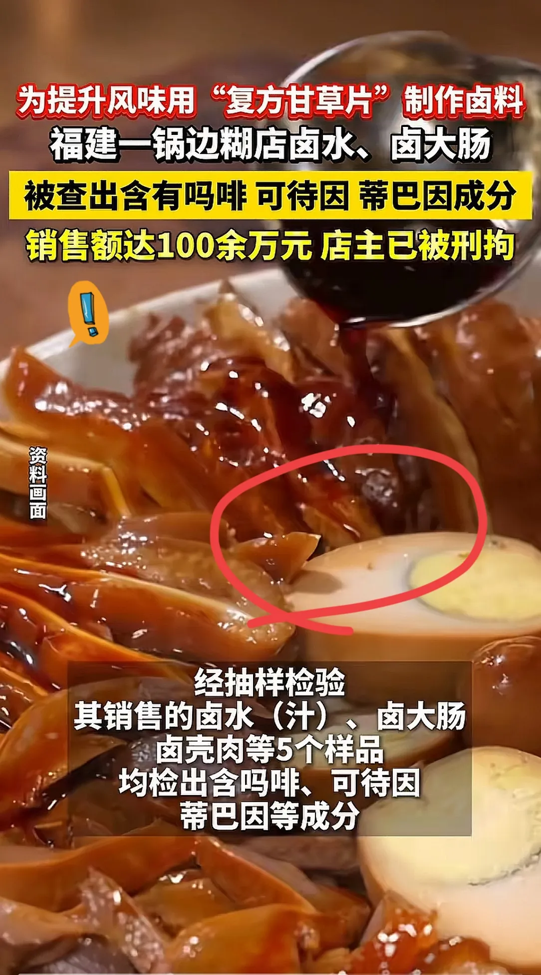 “胆大包天!”福建漳州,一男子将400粒复方甘草片放入汤料中,用来提升卤味的口味,几个月狂卖100多万元,不料工作人员在抽查中发现了吗啡等成分,老板这下才承认了罪行!