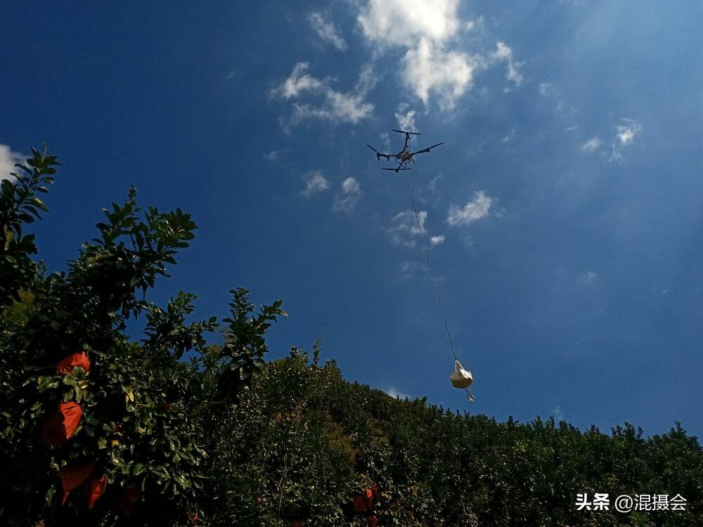 无人机吊运柚子,再差再劣的果园环境道路状况都能等闲视之,普通机型一次起降就是130斤,一天连搬运下山带装车可达40万斤。效率较人工不知快了多少。而且,无人机运费亦很便宜,1斤柚子仅7分钱,加上采摘工钱1斤5分,总费用才0.12元,比挑工全流程工钱0.11元只多1分,但速度不知提高多少倍!