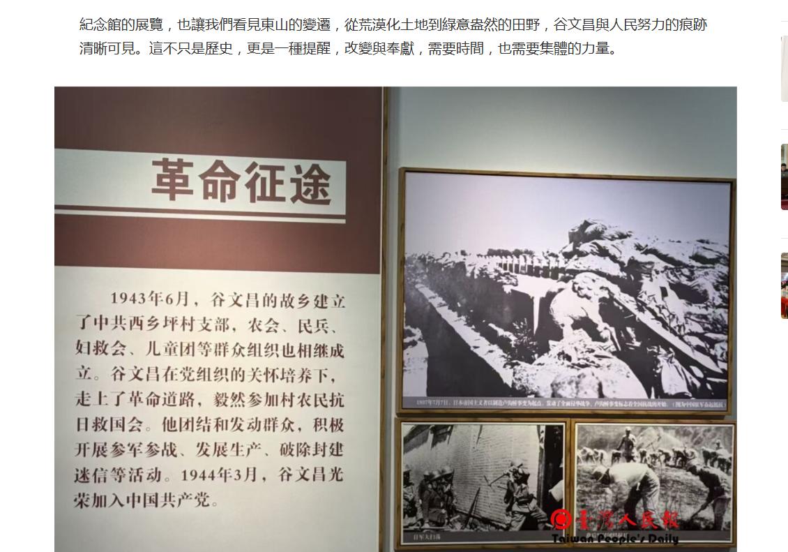 在这篇报道的结尾,他这么写道:“紀念館的展覽,也讓我們看見東山的變遷,從荒漠化土地到綠意盎然的田野,谷文昌與人民努力的痕跡清晰可見。這不只是歷史,更是一種提醒,改變與奉獻,需要時間,也需要集體的力量”。