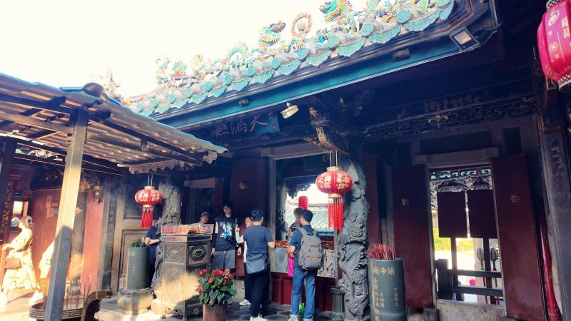 东山关帝文化产业园是大家向往已久的地方,走出谷文昌纪念馆,15日下午台湾媒体青年团队来到这里。在香火缭绕的关帝祖庙前,青年们双手合十,虔诚拜关帝。